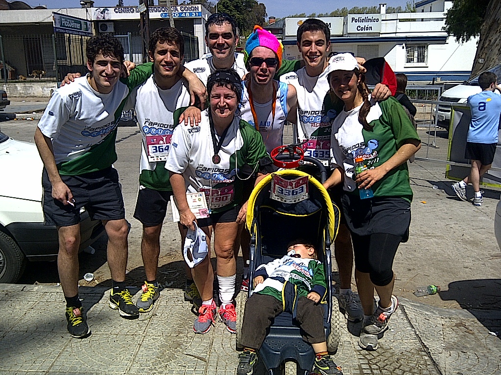 La largada fue muy emocionante con gritos de aliento para mi amado equipo por el que nos lanzamos a la carrera junto a Tizi, que por el momento y hasta que pueda elegir, es terrible hincha de Peñarol!!! Cuando crezca y pueda elegir tendrá la posibilidad de cambiar y en caso de hacerlo que siga y se cambie el apellido también... esa será su elección...